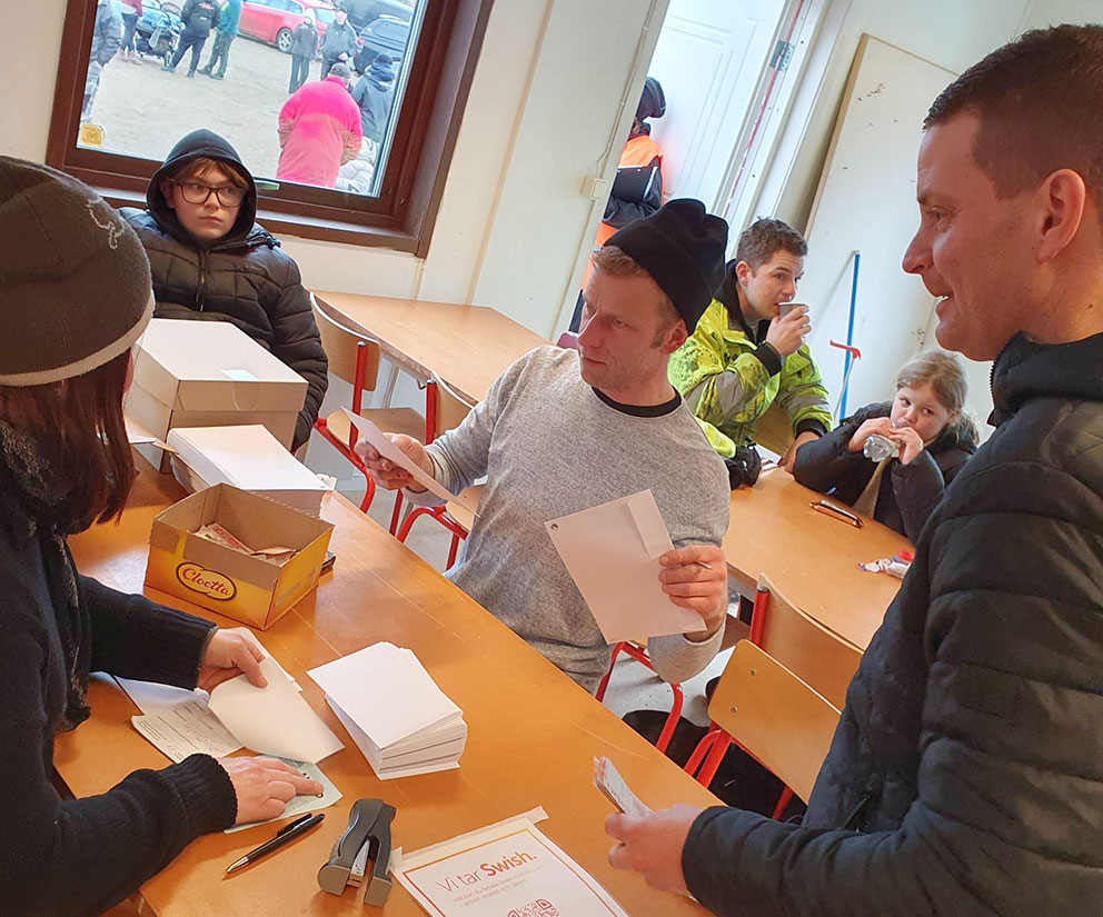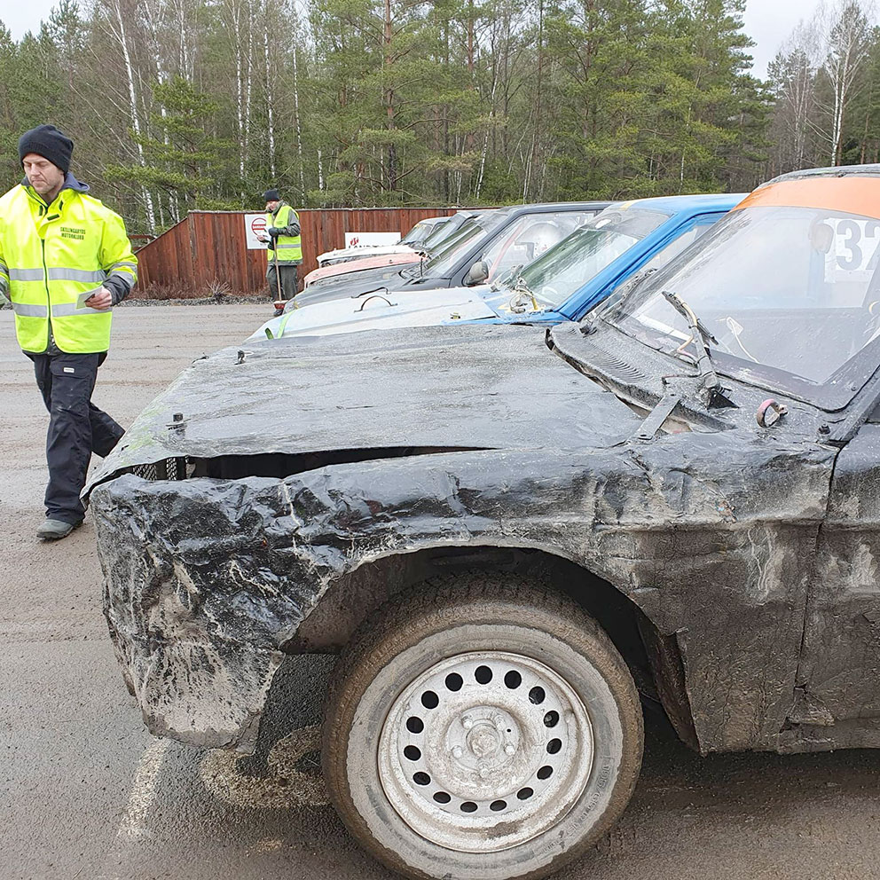 Anbud läggs. Samtliga folkracebilar är till salu efter tävlingen till ett pris av 8 500 kronor.