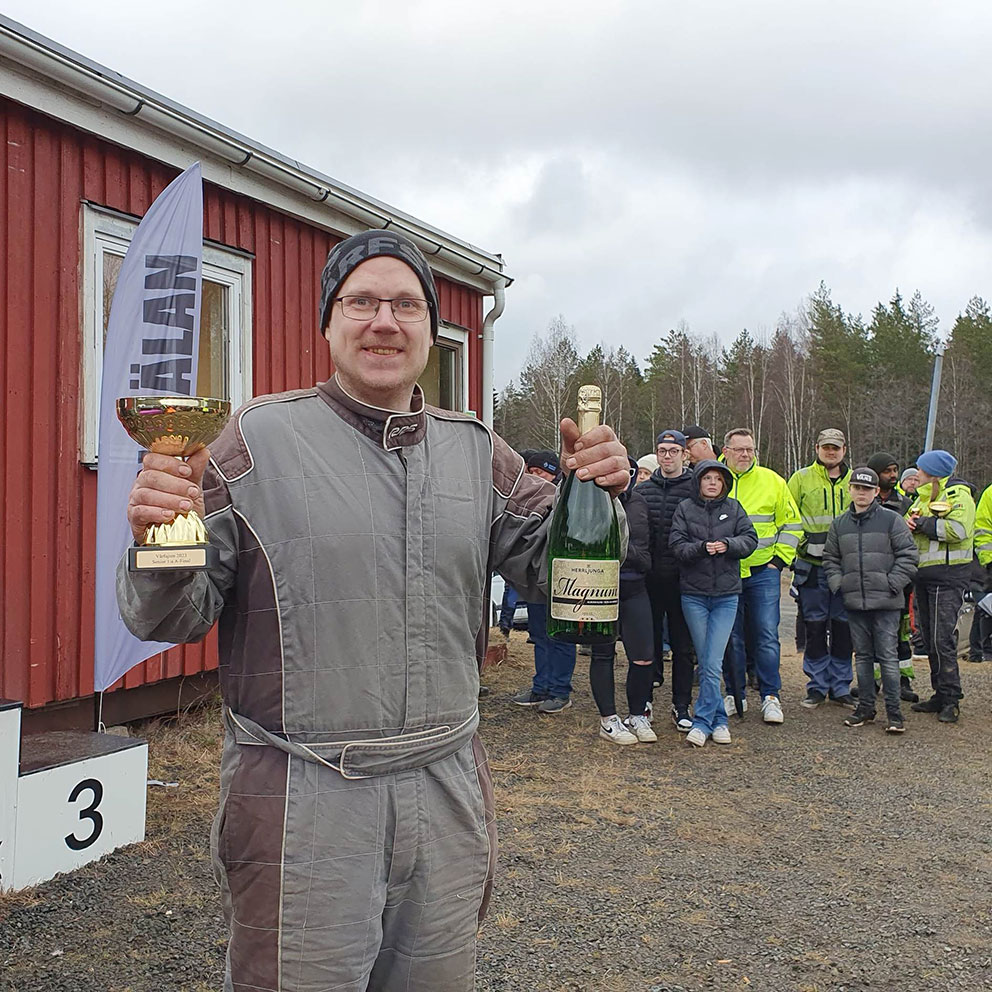 – Det här trodde jag verkligen inte när jag kom hit i morse. Jag åker egentligen bara de tävlingar som är närmast och i Skillingaryd har jag varit många gånger, men aldrig lyckats, säger Björn som bor i Barnarp och kört folkrace sedan 2004.