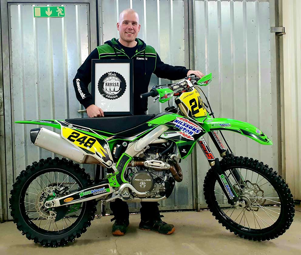 – Jag döpte om mitt motorcrossteam till ”Moto KROSSA Cancer”. Vi driver det som tidigare men nu skänker vi hälften av våra intäkter till förmån för cancerforskningen och målet är att kunna skänka 50 000 kronor. Vi började för två veckor sedan och vi ser att våra sponsorer, både nya och befintliga, vill hjälpa till. Det är kul att kunna göra mer och vi vill också hjälpa till att bidra till forskningen som är så viktig. Dennis poängterar att den fina gemenskapen inom motorsportvärlden är fantastisk.