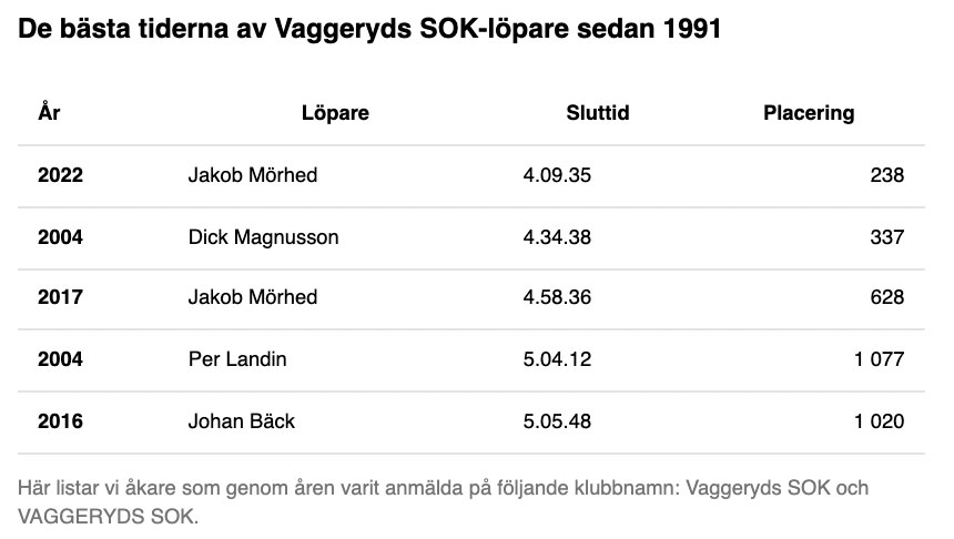 Vaggeryds SOK är den Vaggerydsklubb som har flest åkare till start i söndagens Vasalopp – elva stycken. Här de historiska klubbresultaten att försöka slå.