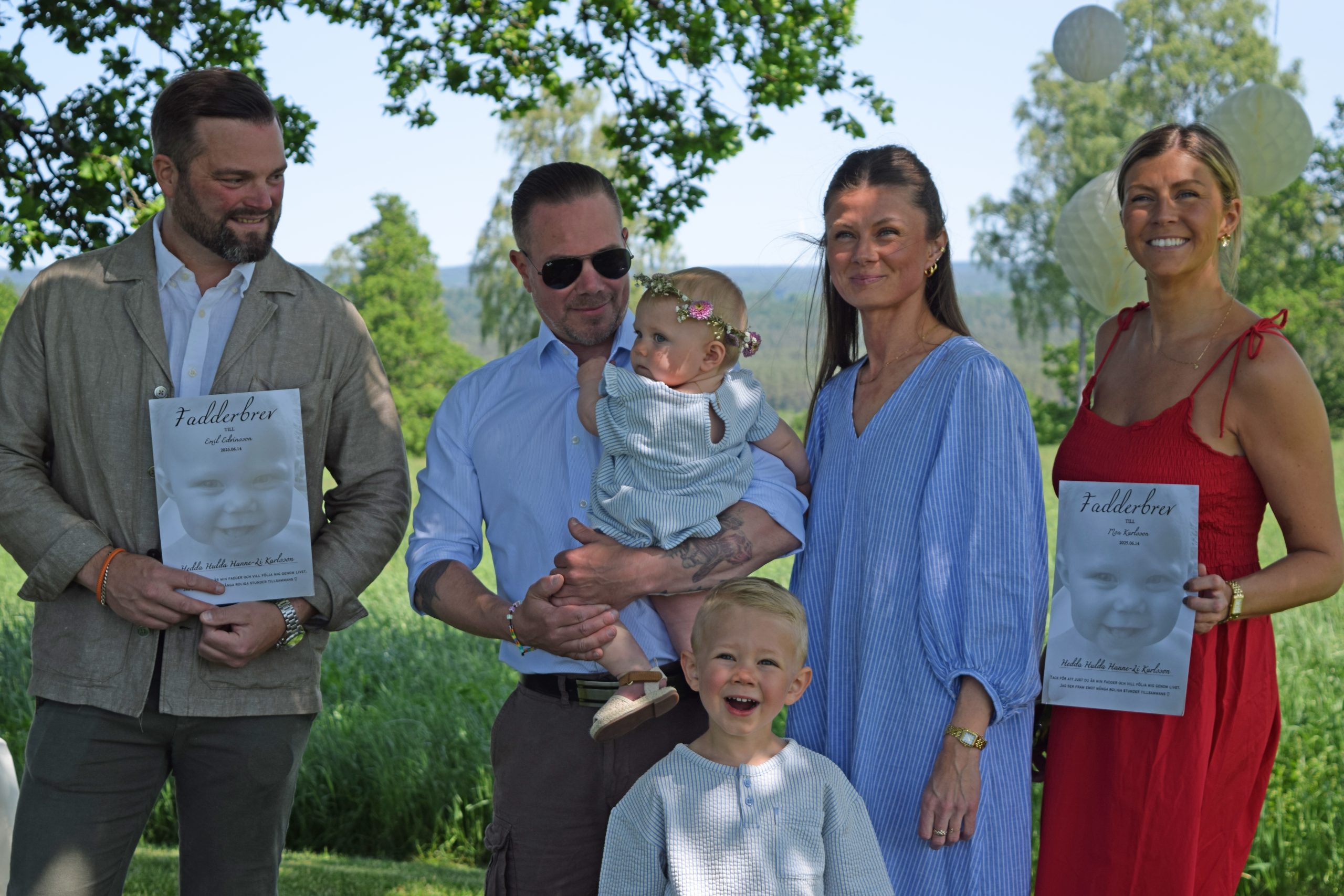 Vid ettårskalaset firades namngivningen vid fridlysta eken på Högabråten under lördagen. Hedda Hulda Hanne-Li Karlsson. Emil Edvinsson i Fagerhult och Moa Karlsson i Tenhult är faddrar.