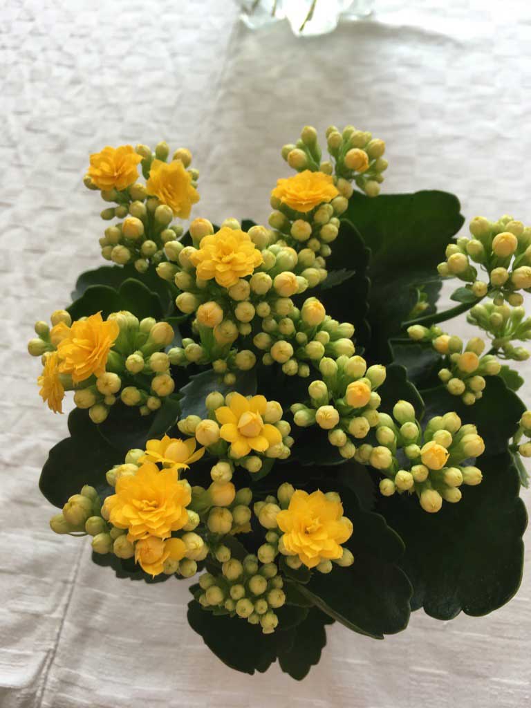 Påskafton - i karantän. På trappan står krukväxt, wienerbröd och vaniljhjärtan. Så glada vi blev och vi vet inte vem du är.