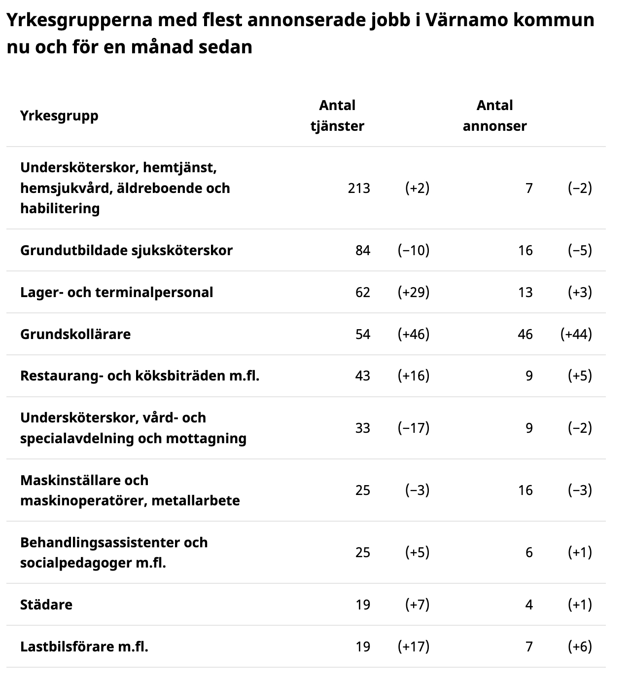 Det finns 318 annonser ute om lediga jobb i Värnamo kommun just nu hos Arbetsförmedlingen. Här är yrkena som efterfrågas.