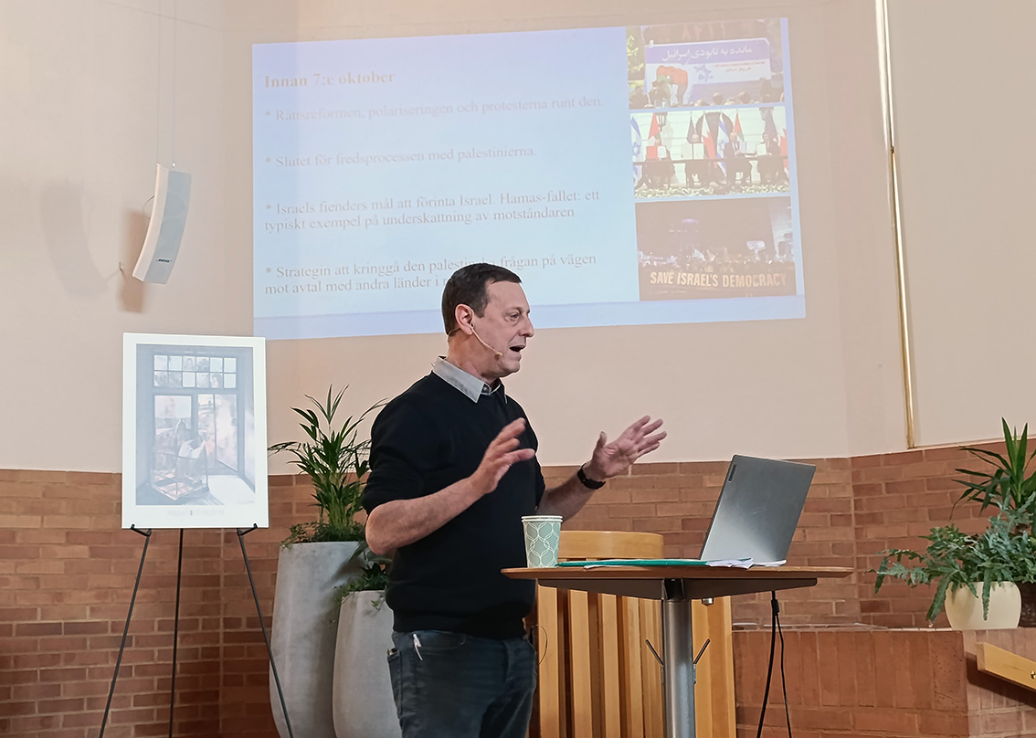 Under temadagen i Värnamo gav den israeliske journalisten David Stavrou en fördjupad bild av utvecklingen i Israel före och efter attackerna den 7 oktober 2023.