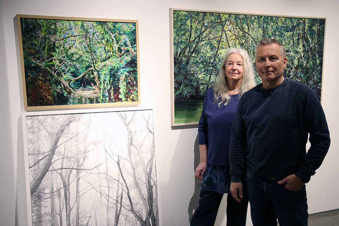 – Det gäller ju också att finna så pass mycket ro så att man kan känna in det där när man är ute och går i naturen. Landskapet är i närheten av min syster som bor därnere. Det är ett otroligt djur- och fågelliv där också. En gång såg hon hur ett vildsvin hoppade ut på en av grenarna för att försöka ta sig över till andra sidan, berättar hon.