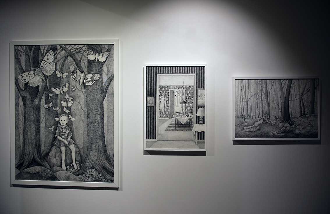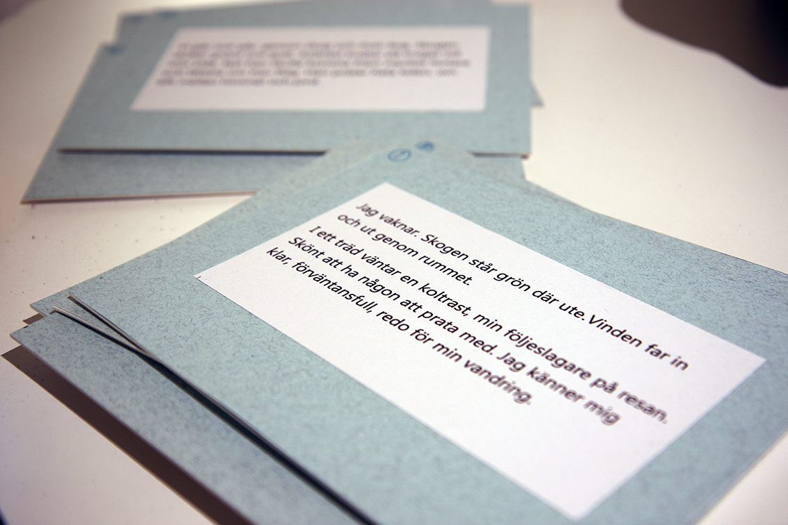 – Själva berättelsen handlar om döden, som jag tänker mig att övergången är från livet till någonting annat som vi inte vet vad det är. I vanliga fall så pratar man ju alltid om att livet passerar revy väldigt fort, men jag tänker mig inte alls det så. De här platserna som jag har avbildat betyder mycket för mig och när jag passerar de här platserna så kan jag känna att jag blir mer berörd än på många andra ställen och jag känner någonting helt annat där än på andra platser. Kopplat till detta har jag skrivit en berättelse som besökarna får läsa sig igenom genom utställningen, berättar hon.