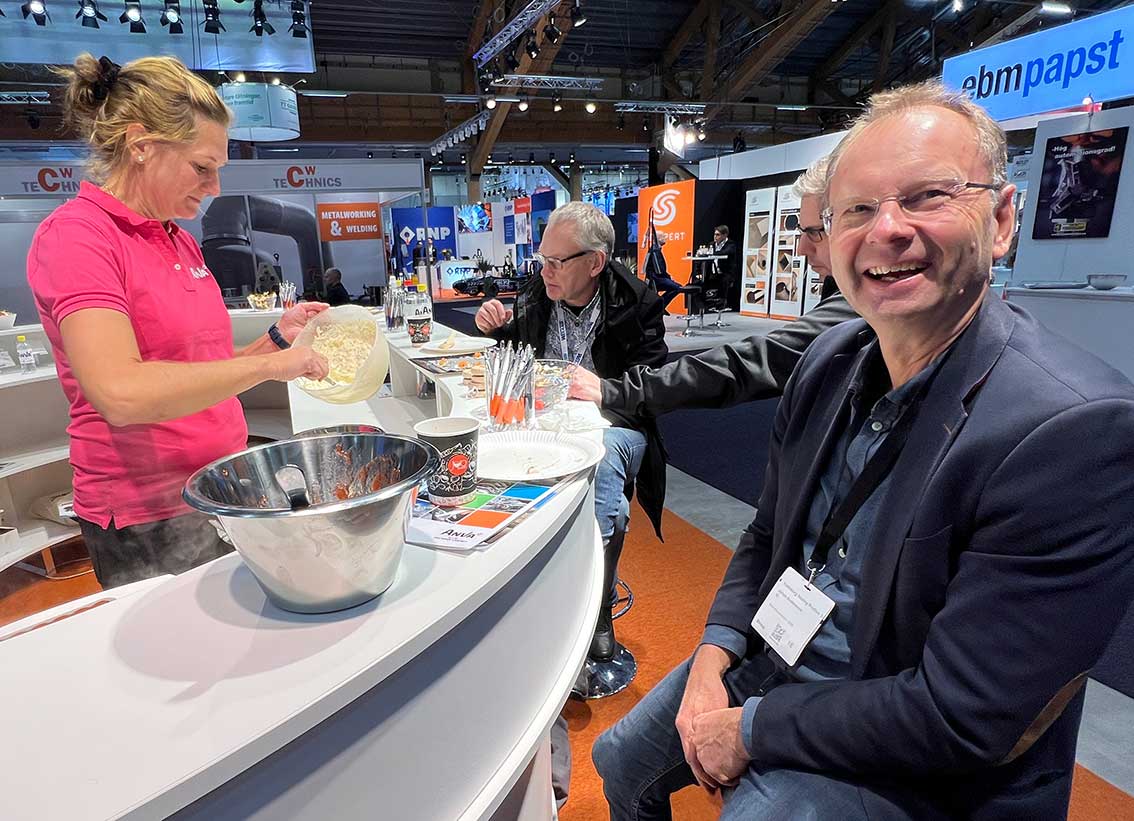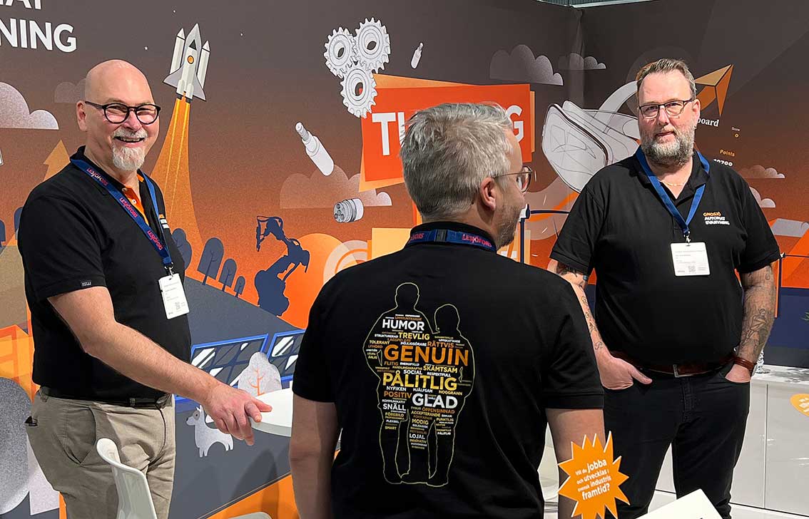 Johan Andersson brukar synas i montern men denna gången fanns han utanför. Johan har slutat på företaget och jobbar numera på Trelleborg i Värnamo. Givetvis passade han på att träffa tidigare kollegor.