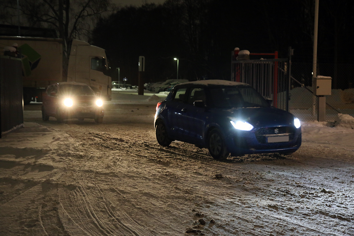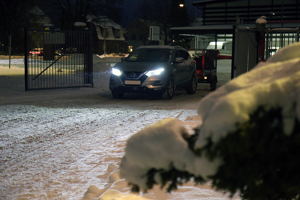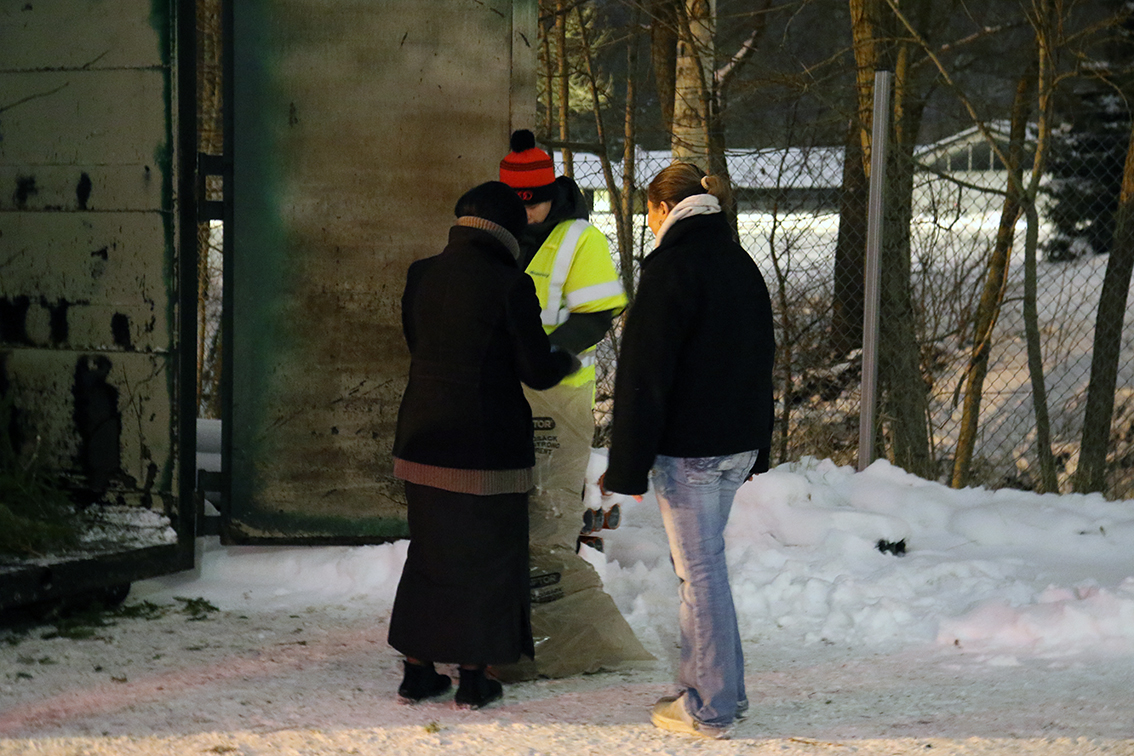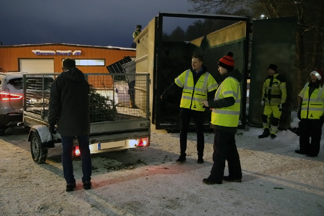 Granar plockas ur en Volvo-suv och läggs i containern.
