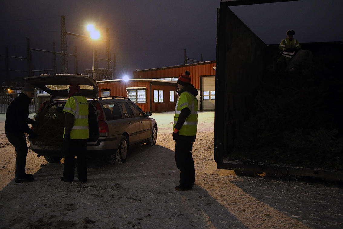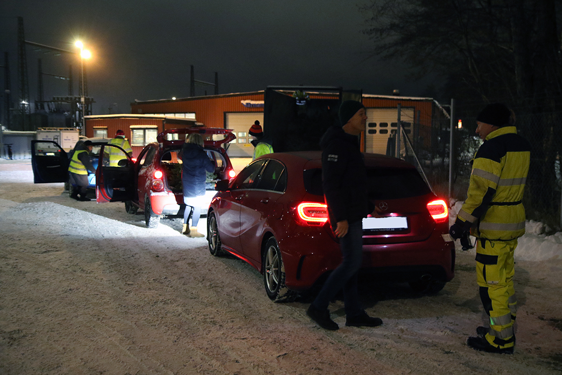 Glädjen är stor bland personalen när givmilda bilister ger granarna nytt liv.