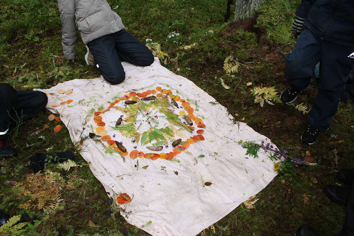 7. Klasslärarna- arbetade med färg och form med naturmandalas och andra jobbade med matteuppdrag.