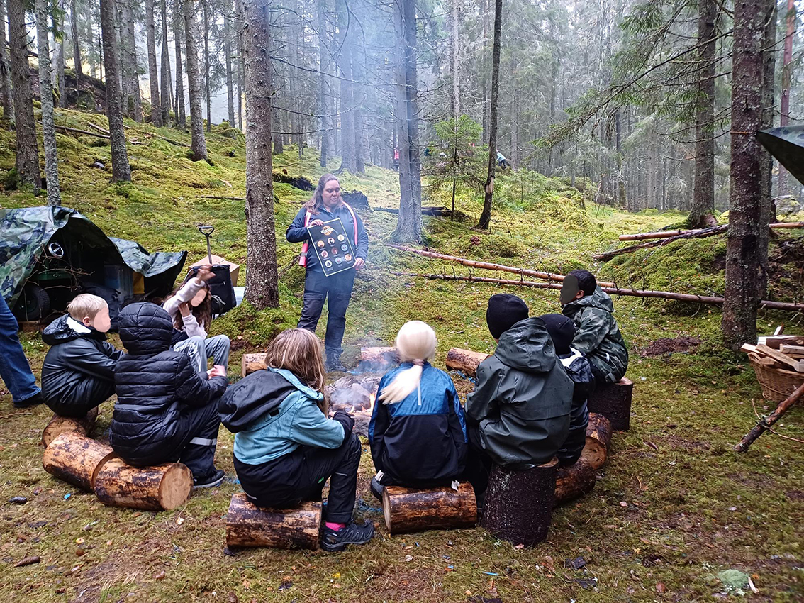 En oerhört kul idé för att få barnen att få uppleva och lära känna vår fantastiska natur och samtidigt lära sig massa nya saker i alla ämnen som man vanligtvis har i skolan. Att man dessutom fick maten fixad ute i skogen var ju pricken över i:et.