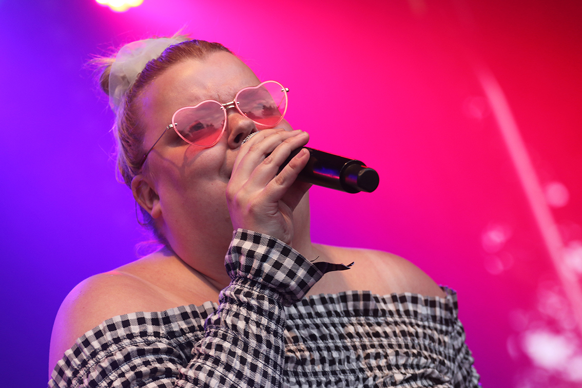 Det hade tisslats och tasslats inför festivalen om att en viss Alva var något utöver det vanliga. "Hon är Sveriges svar på Adele", fick jag bland annat höra. Kvällssolen börjar infinna sig bakom träden när en ljushårig tjej med rosa solglasögon tar plats på scenen (se bilden ovan). Hon tar ett stadigt grepp om mikrofonen och släpper lös sitt fulla register. Herre...min...skapare...vilken röst! Vilken träffsäkerhet! Hon golvade mig fullständigt. "Hon ÄR Sveriges svar på Adele och så står hon här, mitt på en liten scen i centrala Borlänge", står jag och tänker för mig själv.