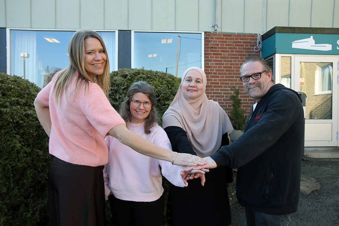 Det började med en enkel fråga och slutade med en fokusvecka. Nu går flera studieförbund och Värnamo kommun samman för Funkisveckan i Värnamo. Från vänster: Julia Hjälmeby, verksamhetsutvecklare på Medborgarskolan Region Öst, Cindie Andersson, verksamhetsutvecklare på Studieförbundet Vuxenskolan Jönköpings län, Minela Jakupovic, verksamhetsutvecklare på NBV Jönköping, och Jerry Rogerstam. verksamhetsutvecklare på ABF Jönköpings län. Bild: David Alin
