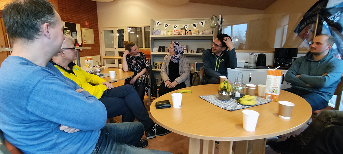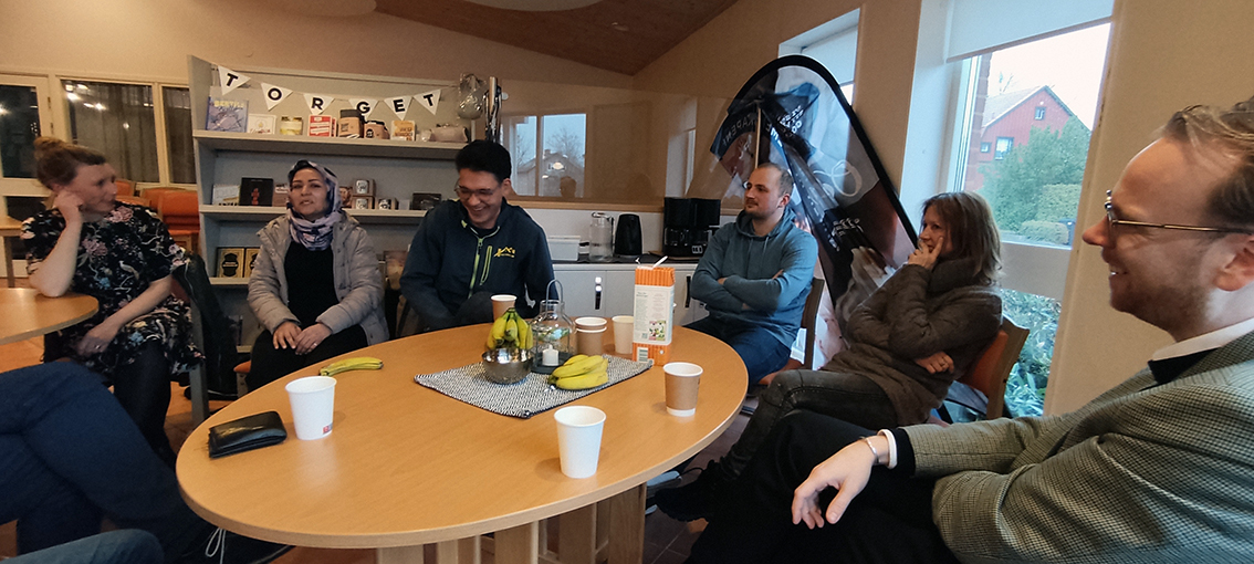 Tre familjer tog chansen att träffa kommunstyrelsens ordförande Tobias Pettersson (M) på tu man hand i Rydaholms frikyrka. Tobias inledde samtalet med att fråga deltagarna varför man flyttar till Rydaholm.