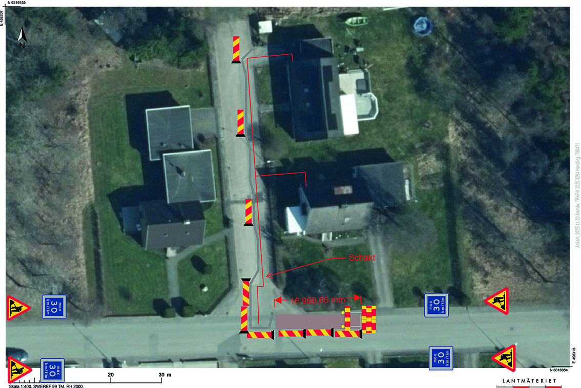 Arbetet startade i veckan och beräknas pågå fram till slutet av april. Under tiden arbetet pågår råder sänkt hastighet till 30 kilometer i timmen på sträckan. Se översiktsbilden över arbetet nedan: