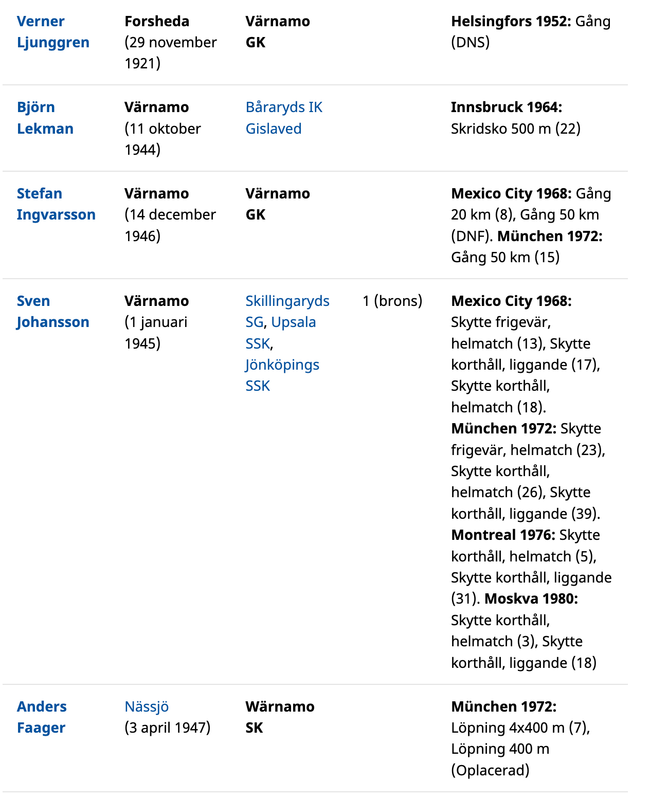 Hela listan: Här är alla olympier från Värnamo – hittills