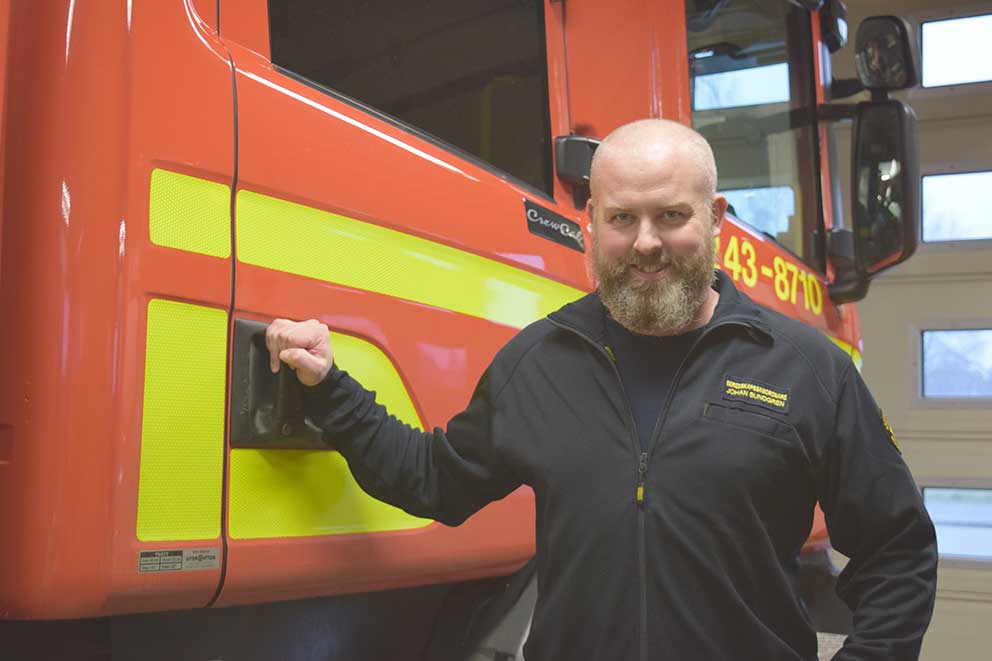 Under tiden Johan jobbade på datafirman var han även deltidsbrandman i Värnamo där han kom ett steg närmare det jobb han har idag.