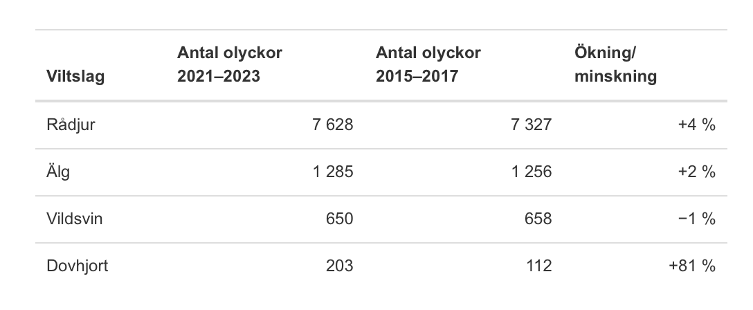 Kraftig ökning av viltolyckor