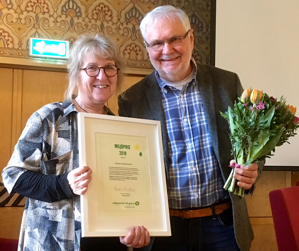 Riksdagsledamot Emma Hult berättade om klimatsmart byggande och efter lunch blev det utdelning av 2018 års Miljöpris som i år gick till Emåns Ekomuseum. Speciellt prisades deras Naturskola - att lära in ute. Emåns Ekomuseum representerades av Johan Uhr som fick ta emot diplom och blommor.