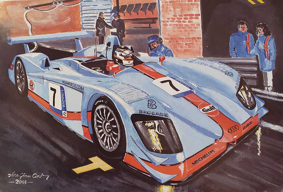 Utöver formel 1 motiv visas även en del övriga racingmotiv, som fotot nedan, där Stefan Lill-Lövis Johansson finns med i sin Le Mans Audi R8 i Gulf välkända färger.