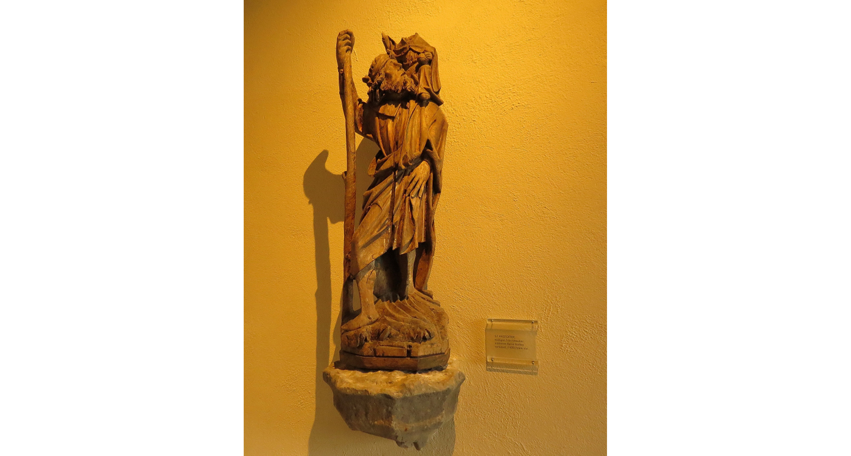 Bilden visar Sankt Kristoffer, ett verk troligtvis gjort i lübeckermästaren Berndt Notkes verkstad och daterat till slutet av 1400-talet.