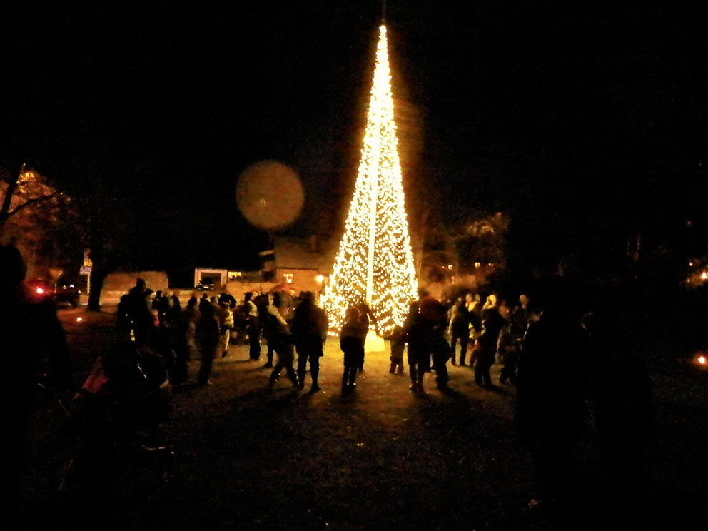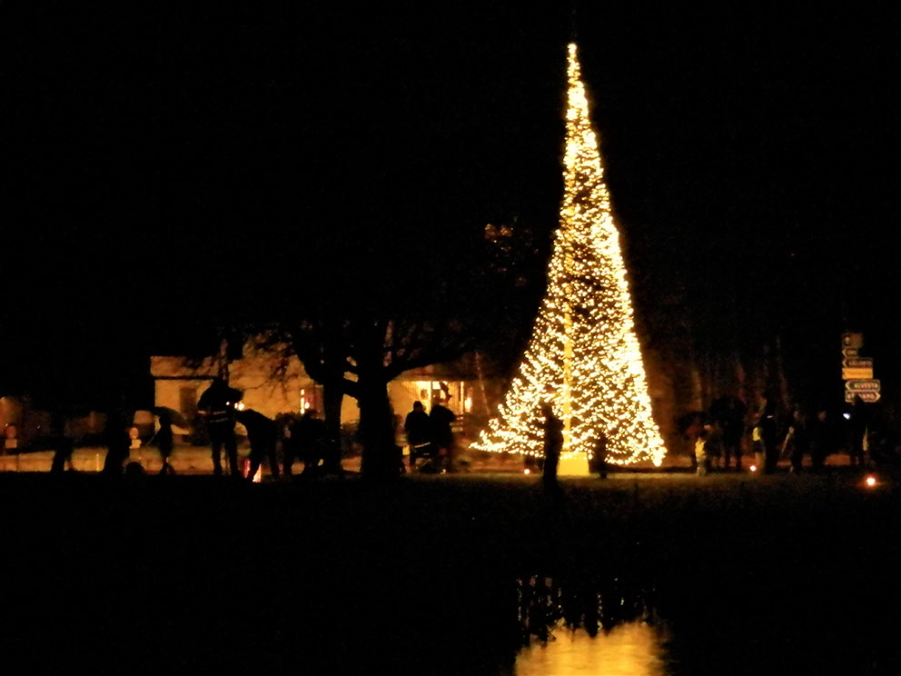Ett stort antal barn med föräldrar slöt även denna Knut upp kring granen ”ljusslingan” vid Norregårdsdammen i Bor, trots att vädret inte visade sig på sin bästa sida.