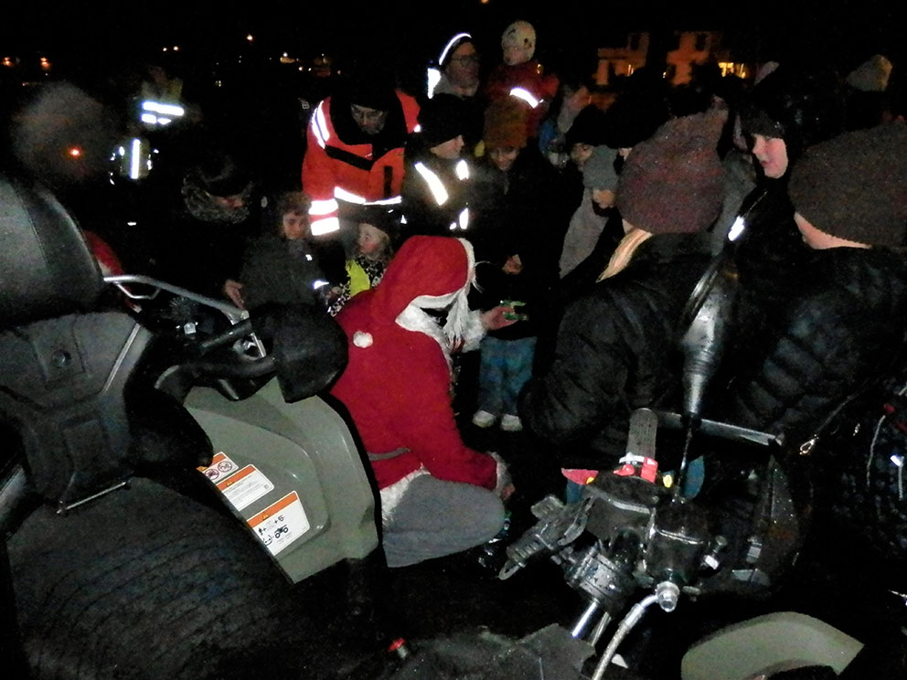 Sedvanliga ”dans kring granen lekar” med tillhörande julsånger engagerade deltagarna. Efter alla lekar så dök så tomten upp, inte med släde, utan med en fyrhjuling med släp. Och vilken lycka – han hade med sig godispåsar till alla barnen.