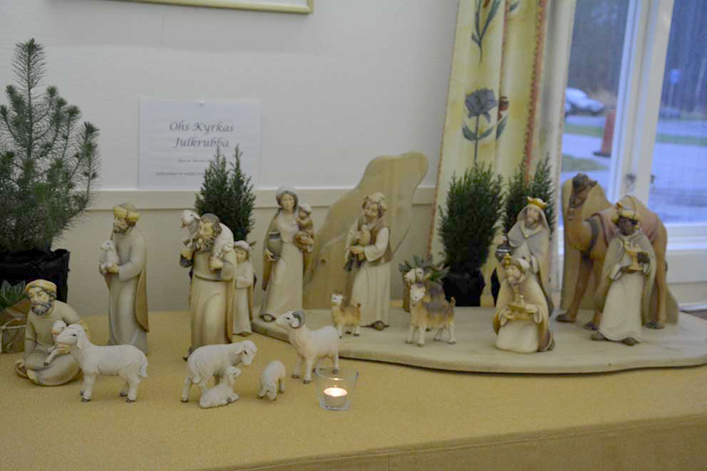 sammanlagt var det 80 olika julkrubbor som besökarna kunde titta på. Vietnam, Kongo, USA och naturligtvis Sverige var några av länderna som bidragit med sina egna och mycket speciella julkrubbor.