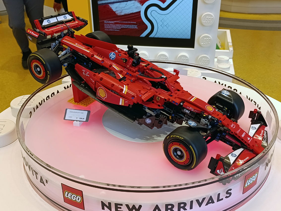 Mitt i centrala Milano ligger stadens officiella Lego-butik och Simon och jag var bara tvungna att göra ett stopp. Jag blev som ett barn på julafton bokstavligt talat när det första jag möttes av var Legos version på Ferraris Formel-bil från 2024.