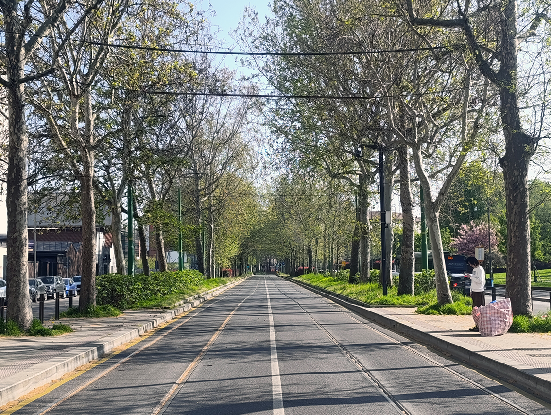 Bil- och spårvagnsvägen ramas in av en trädbevuxen allé. Bild: David Alin