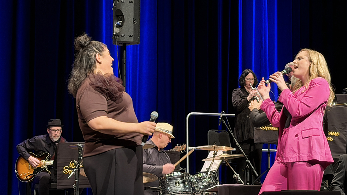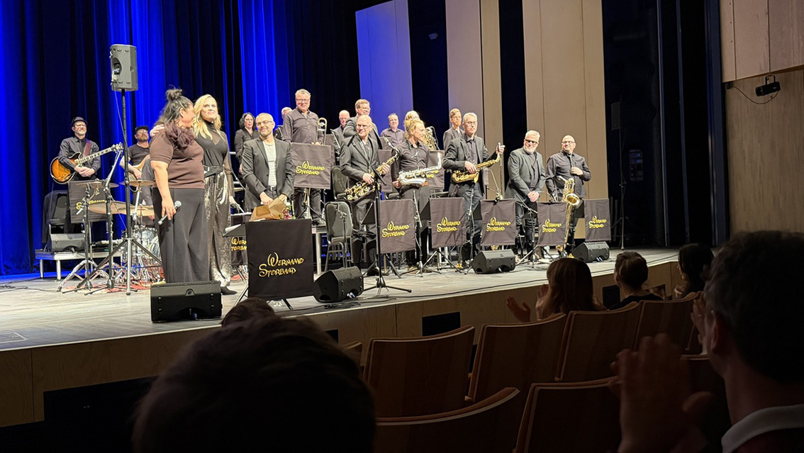 På scen stod Värnamo Storband tillsammans med sångsolisterna Jenny Dani och den värnamobördiga Pernilla Karlsson, som tillsammans skapade en fantastisk musikalisk upplevelse och bidrog till den fina stämningen i lokalen.
