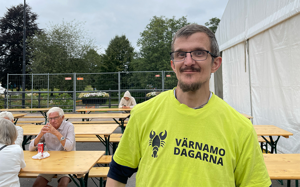 Daniel Misic är funktionär och har jobbat flera år med Värnamodagarna. I år är han allt i allo, han plockar och fixar och ser till att saker och ting funkar som det ska.