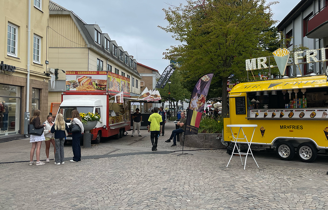 Matvagnar står uppställda i hela centrum. Bild: Jenny Almlöf