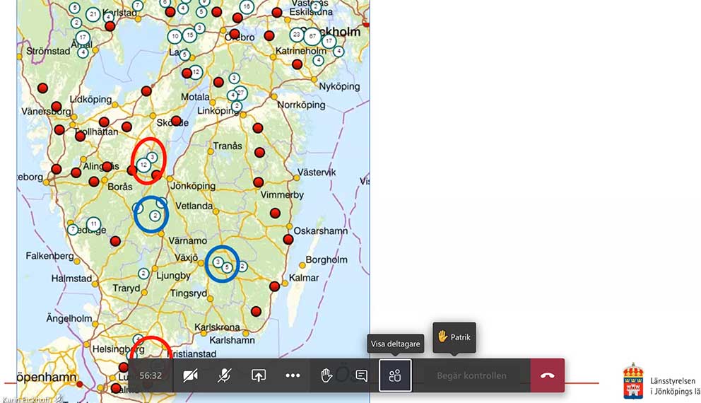 – Brängenreviret heter det nya vargrevir i nordvästra delen av länet. Vid de blåa ringarna finns varghannar som revirmarkerar och de krafsmarkerar, precis som hundar gör på promenad. Hannar kan sluta upp med revirmarkeringen när eller om de inte träffar på en tik. Vi vet inte vilken varg som finns i vårt län. Däremot har vi fått in spillningar från det området tidigare och det visar sig vara en varghanne, avrundar Linda Andersson.