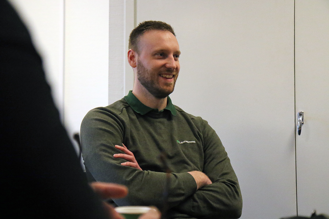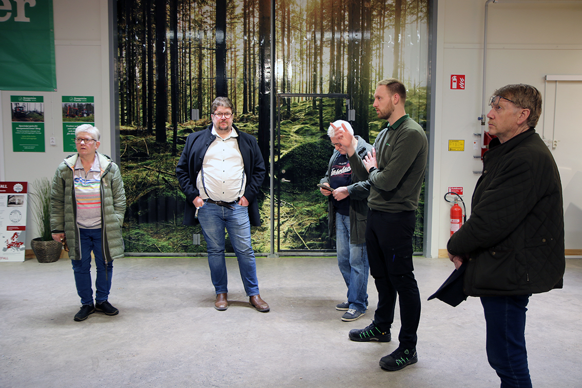 Lukas Reuterström, platschef på Lantmännen Maskin, berättar om verksamheten för politikerna. Bild: David Alin