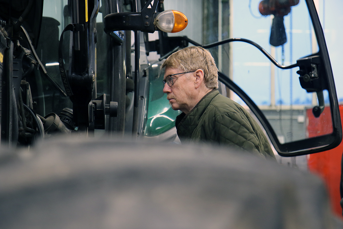 Stefan Widerberg kollar in en ny traktor. Bild: David Alin