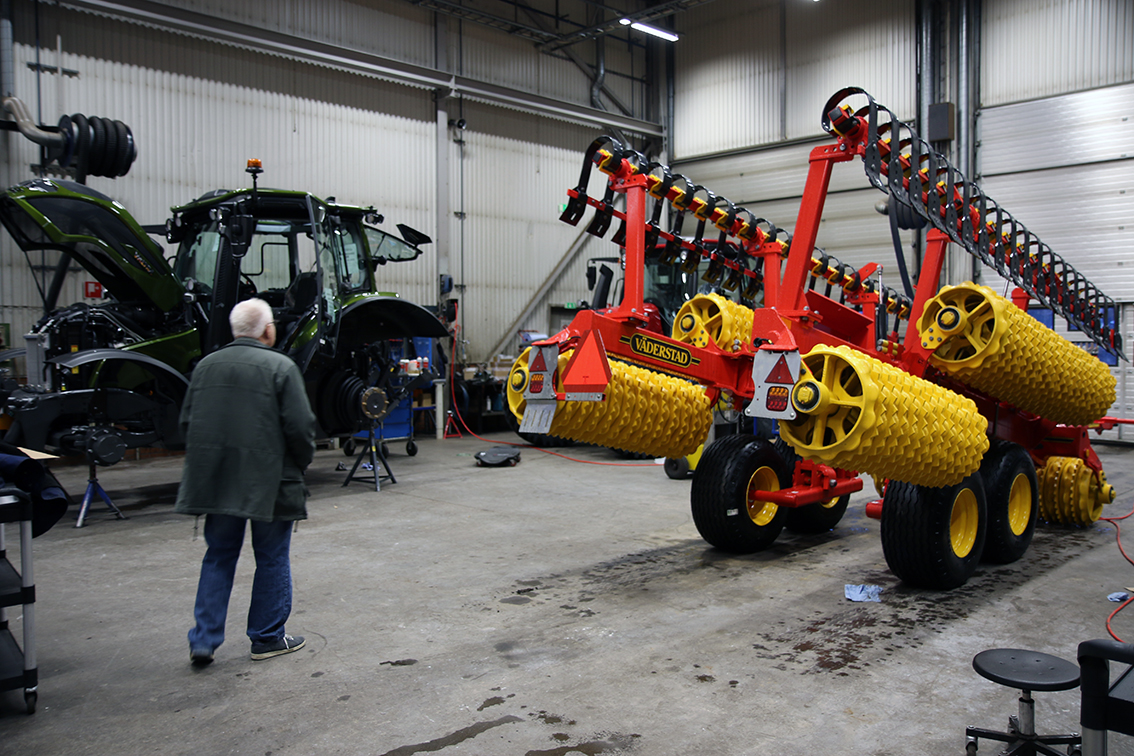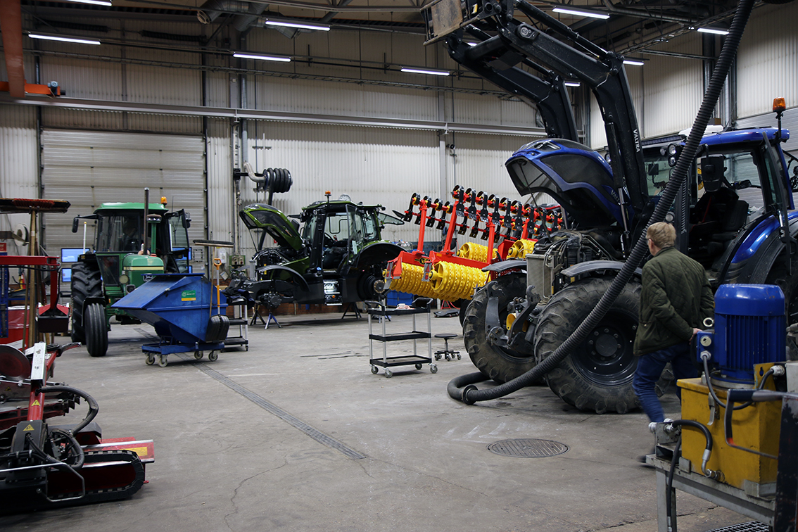 – Vi har två reservdelssäljare, en verkmästare, sex stycken mekaniker samt två maskinsäljare. Det roliga är att vi åldersmässigt är i så gott som samma generation. Vi kommer också att bli fler framöver. Anläggningen i Jönköping har stängts så vi kommer att få hit några centrala funktioner som har suttit där innan, så lite ombyggnationer väntar och vi blir några fler här på arbetsplatsen, berättar Lukas Reuterström.