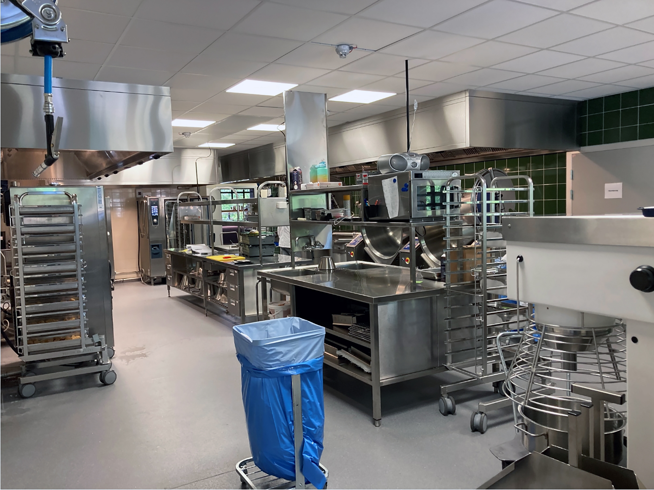 Projektet omfattade rivning av befintligt storkök till stomrent, uppbyggnad av nytt, helt omdisponerat, storkök, byte av serveringslinjer och övrig utrustning i matsal samt byte av fettavskiljare. Projektet inleddes 2015 med utbyte av maskiner, projektering genomfördes 2020 med entreprenadstart under 2022 med projektslut hösten 2023.