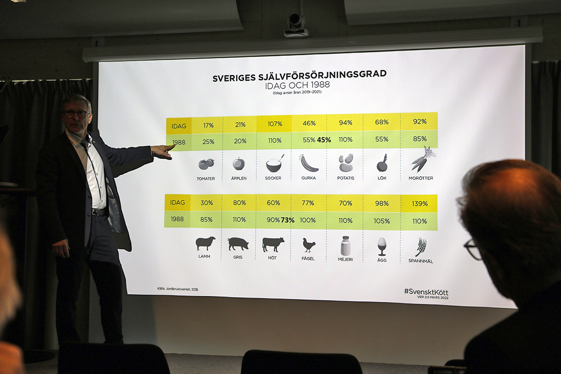 – Vi vill verkligen ha en jordbrukspolitik, inleder Staffan Eklöf (SD). För oss är det viktigt i sig att vi har ett välfungerande jordbruk. Det är en av två viktigaste landsbygdsmotorer som får landsbygden att leva. Sedan är ju svenskt jordbruk kanske världens bästa sett ur djurskyddshänseende. Det är bra för miljön, för djurvälfärden och bra för klimatet, om det svenska jordbruket producerar mycket. Producerar vi mindre så måste vi importera från andra ställen som kanske har sämre standard när det gäller djurskydd och miljö än oss, vilket i sin tur även bidrar till ett sämre klimat. Även ur ett självförsörjningsperspektiv så är det viktigt. Som Putin håller på så blir det allt viktigare att vi har en beredskap för kris och krig. Sedan handlar det i slutändan om geopolitisk suveränitet. Ska man ha det så måste man ha en viss självförsörjning inom olika områden, inte minst livsmedel, säger Eklöf (SD).