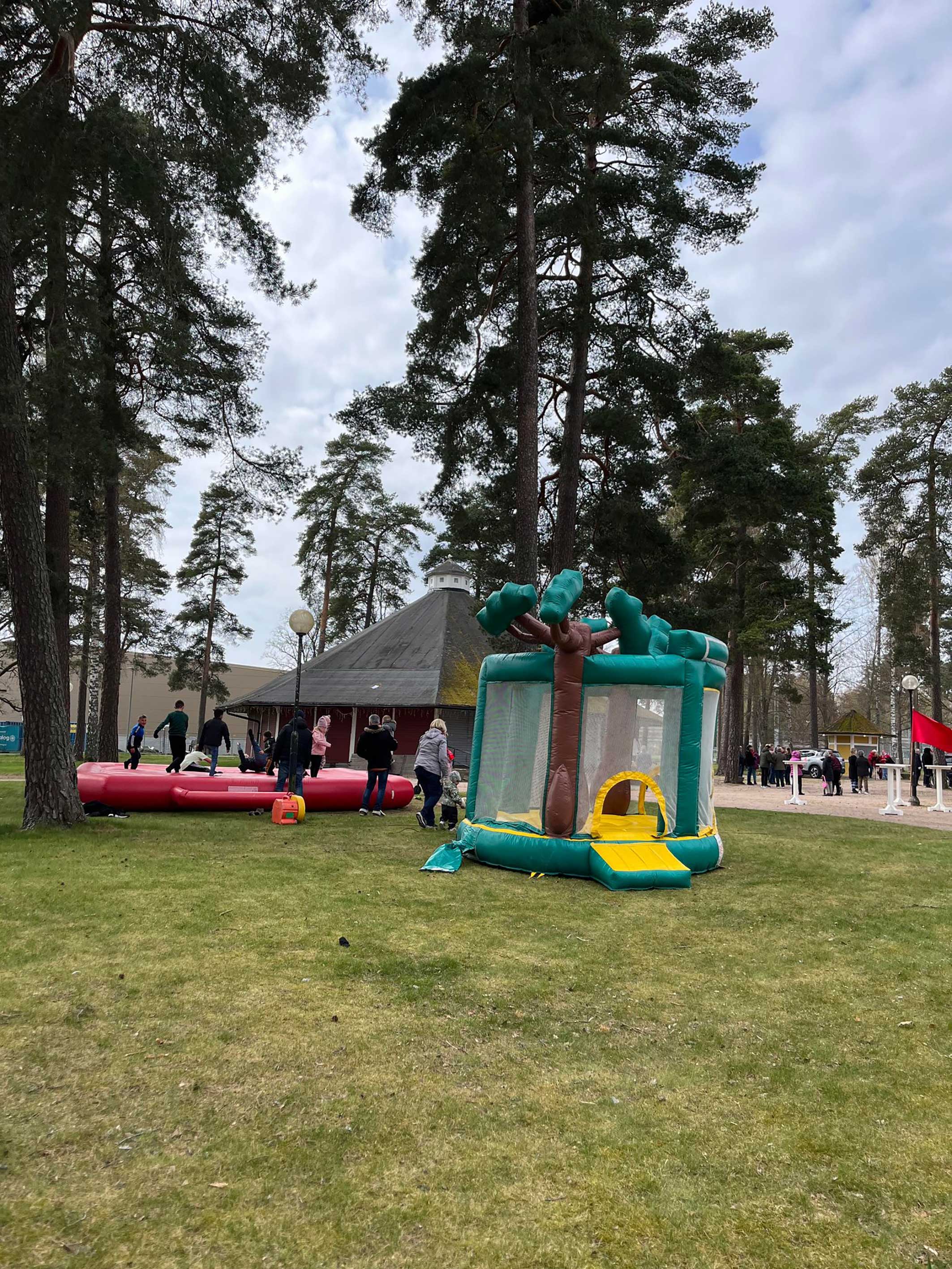De talande fortsätter att prata medan barnen leker i hoppborgen ett stenkast bort och flera står i fikakön redo att värma sig med en kopp kaffe.
