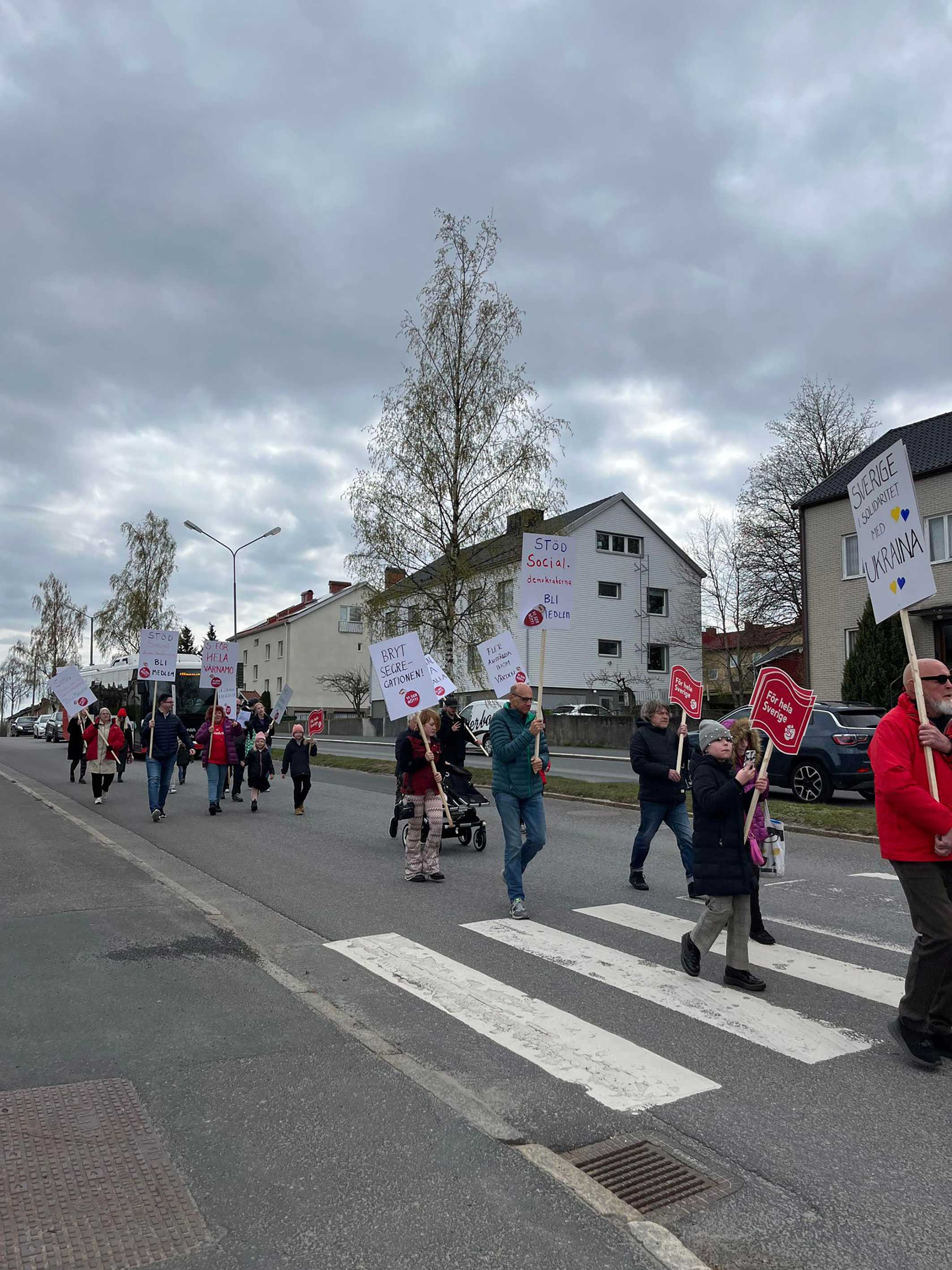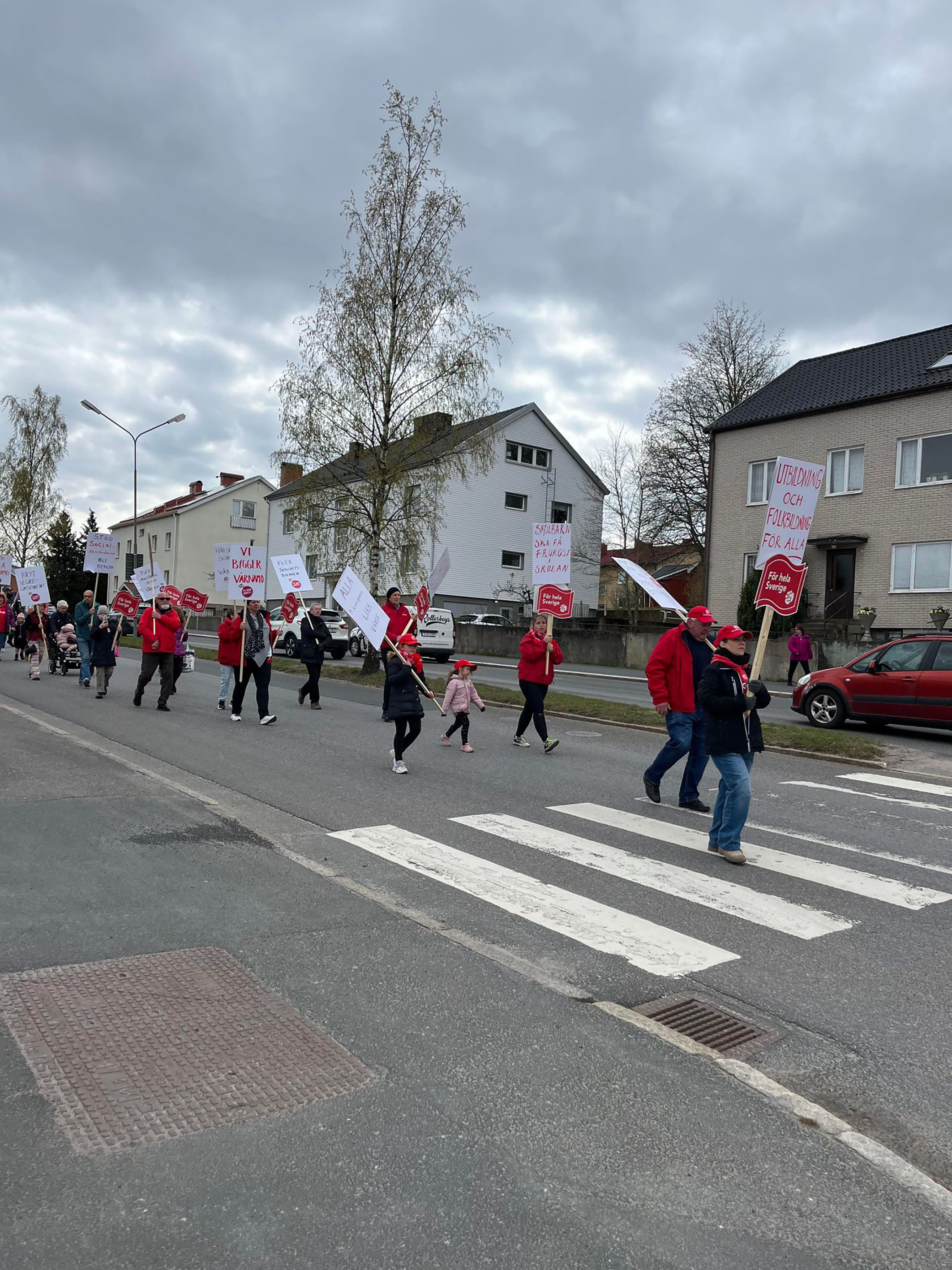 Vid Mossleskolan i Värnamo samlades Socialdemokraternas demonstranter. Tillsammans med Lyran och drillflickorna promenerade de sedan till Folkets Park där det skulle firas första maj.