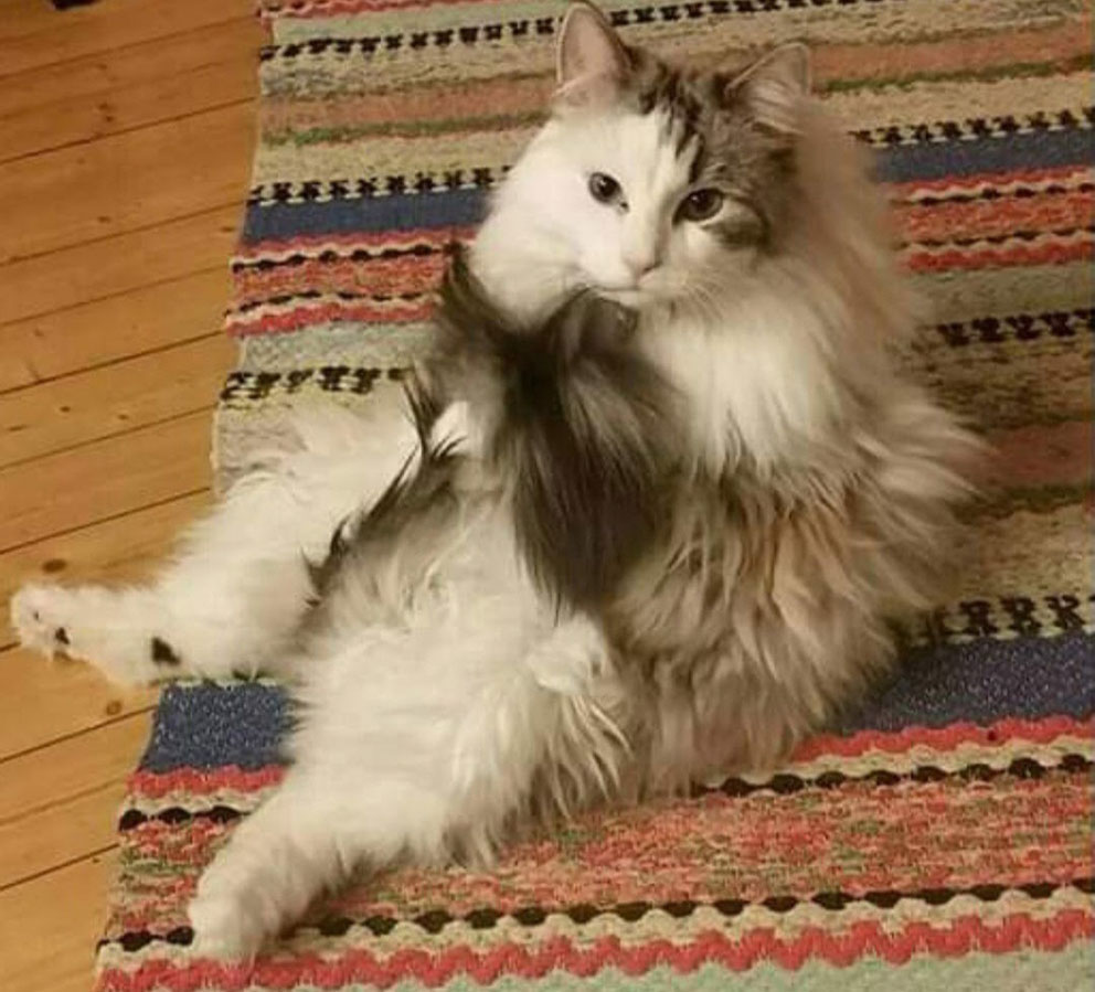 Bilden är på vår knaskatt Qryzolit som är lika gammal som mig. Han är verkligen noga med att hans vackra svans blir ren." // Lukas 11 år