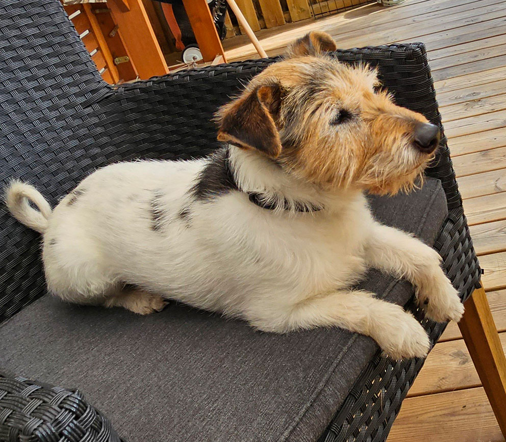Detta är Barney som är 13,5 år gammal. Barney är en Jack Russell.