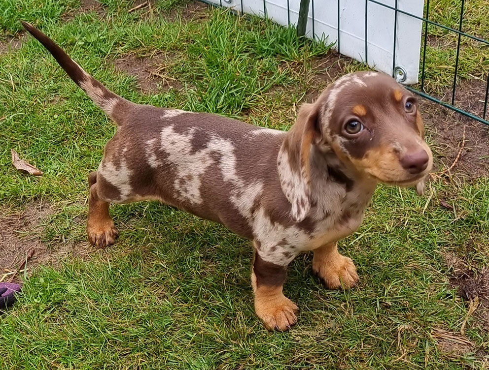 Taxen Kelly 14 veckor gammal. Bor på Queenlawless kennel i Värnamo.