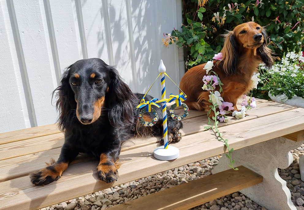 Taxarna Chira 4 år och Julia 3 år. Hundarna bor på Queenlawless kennel i Värnamo