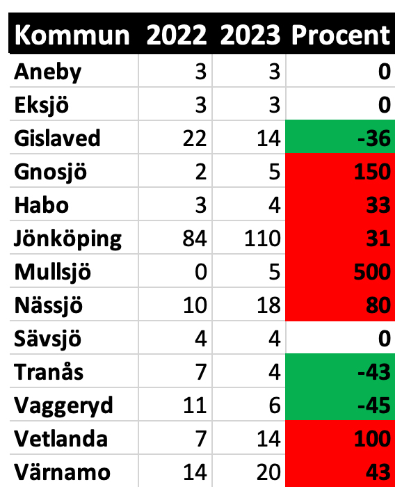 Det är affärs- och kreditinformationsföretaget UC som sammanställt siffror över konkurser i riket mellan januari och december 2023. Förra året gick 20 företag i Värnamo kommun i konkurs. Jämfört med 14 stycken under 2022 så är det en ökning med hela 43 procent.