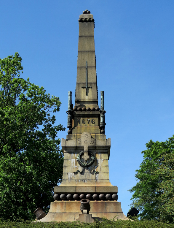 ”1676 den 4 december stridde och blödde här folk af samma stam. Försonande efterkommande reste minnesmärket”.