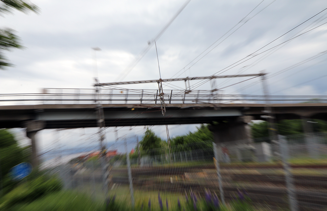 Viadukten över järnvägen i Värnamo är en kontinuerlig balkbro av armerad betong i 15 spann.