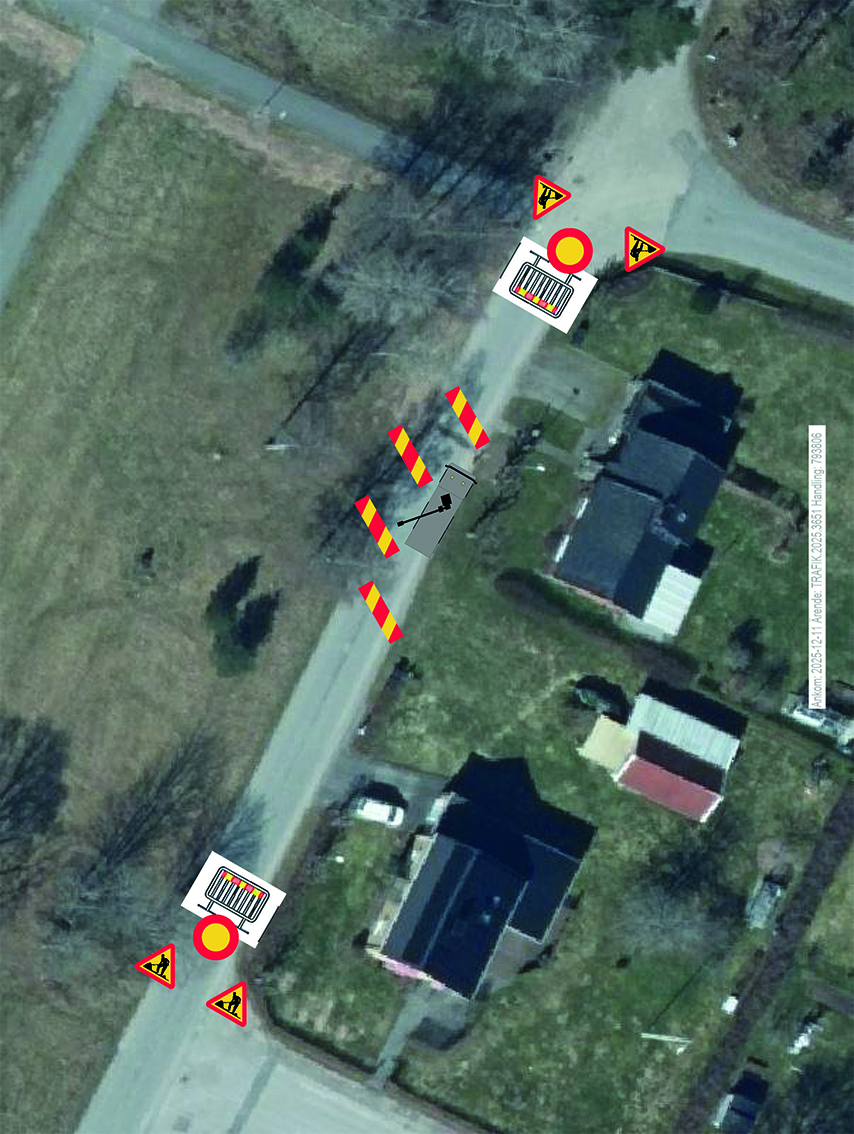 Under tiden som arbetet pågår stängs det berörda arbetsområdet av med grindar och varningsskyltar sätts ut vid korsningen där Stationsvägen och Hantverkarevägen möts samt vid korsningen där Stationsvägen möter Norregårdsvägen. Se överblicksbilden över arbetet till höger.