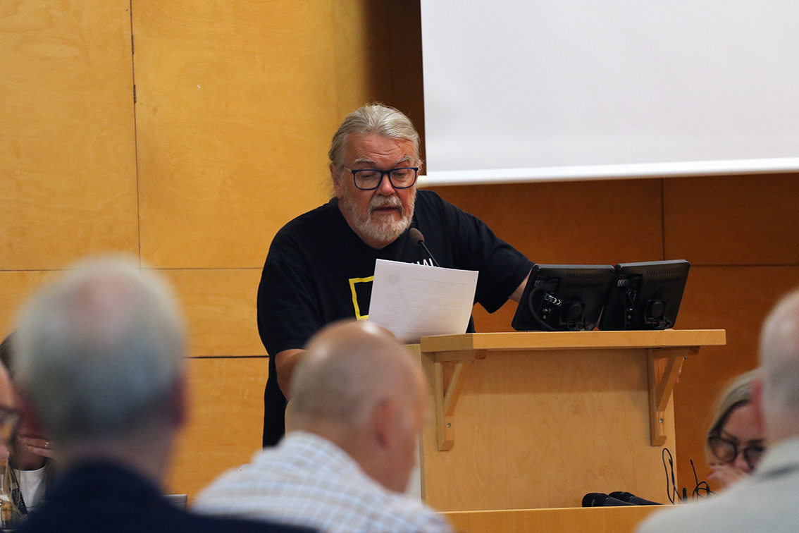 Fjodor Eklund (V) presenterade motionen för kommunfullmäktiges ledamöter.